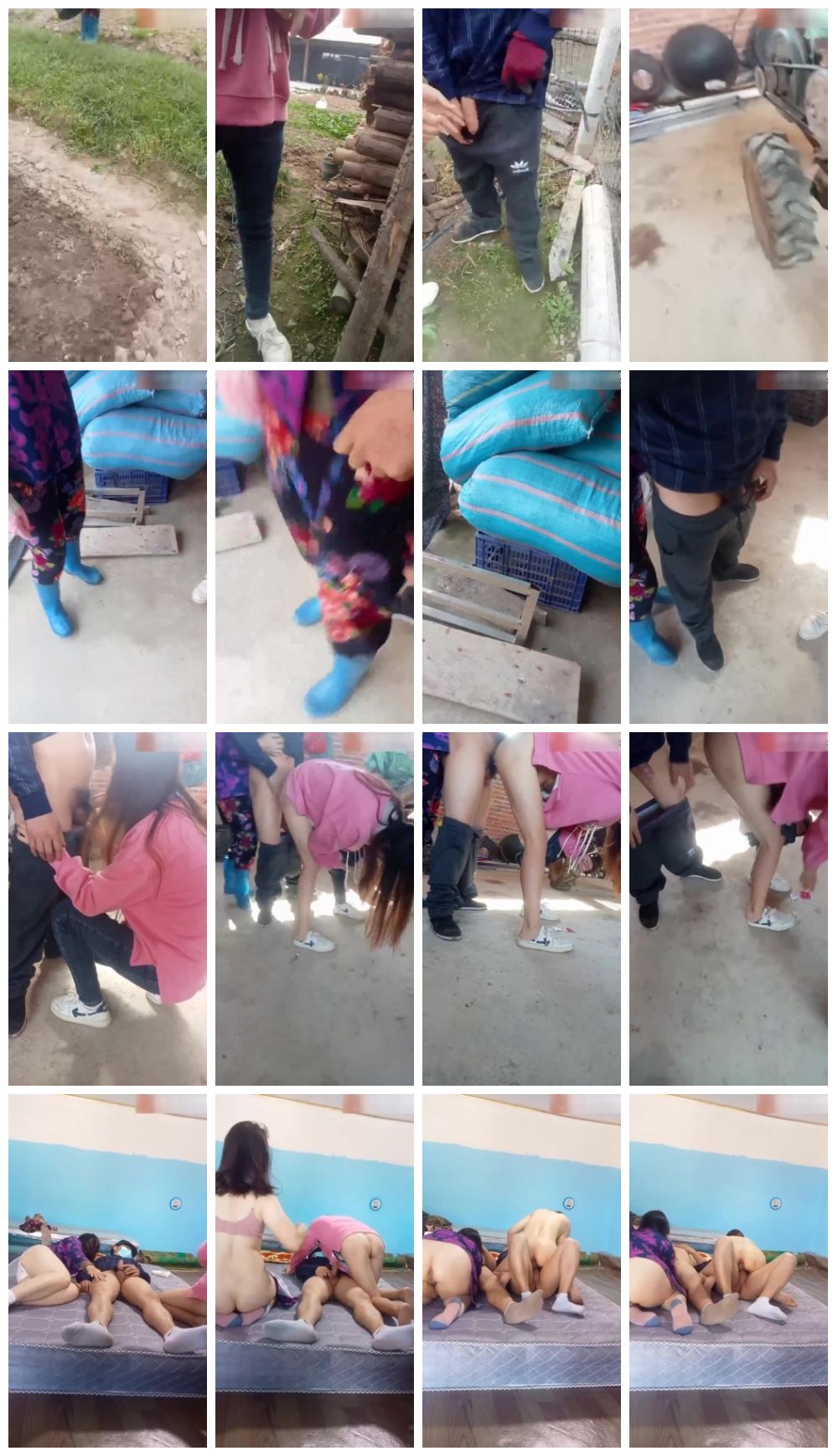 户外勾搭农民大哥激情4P啪啪,拖拉机旁脱了裤子给大哥口交大鸡巴,后入爆草抽插